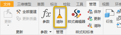 功能区的“管理”选项卡 “管理”面板 “清除未使用项”。