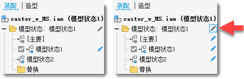以下设置决定了模型状态、iPart 和 iAssembly 如何对编辑做出反应。启用“编辑工厂范围”后,所有成员都会响应编辑。启用“编辑成员范围”后,只有激活的成员才会响应编辑。更改范围设置的步骤: