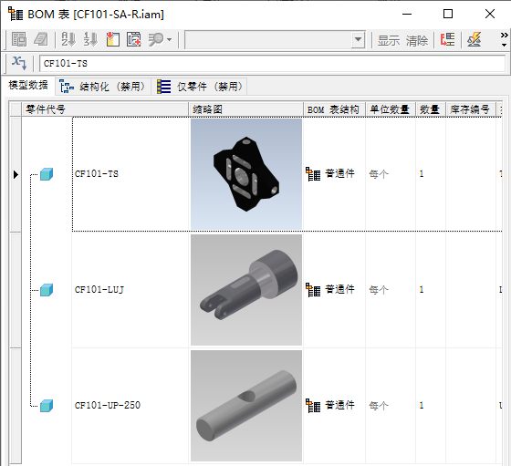 BOM 表中会显示部件中引用的零部件。