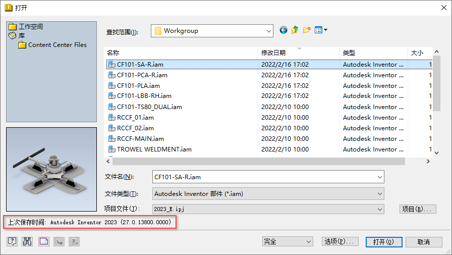 通过安装的任何相同版本的 Inventor 可以保存和重新打开该文件。