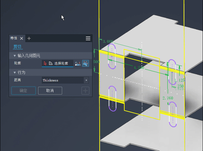 在“行为”下,选择创建所需的切割特征需要的选项: