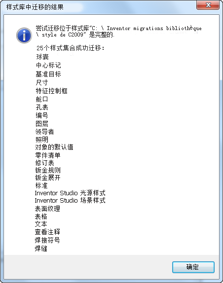 如果未修改过早期版本随附的样式库,则不需要移植该库。请使用 Inventor 新版本随附的样式库。