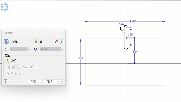 现在,您可以使用一条草图边界,仅阵列化该边界内的草图几何图元。您可以确定在阵列中使用哪些几何图元,如仅使用边界内的几何图元、形心在边界内的所有几何图元,或使用基点来确定,将使用基点在边界内的所有几何图元。