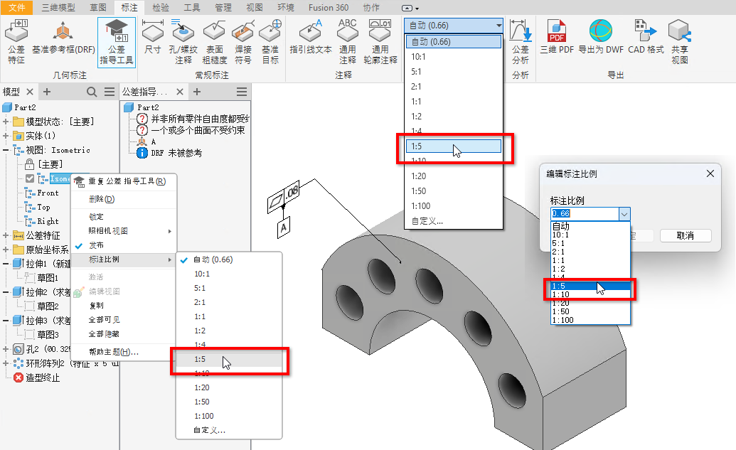 在此版本中,根据 DIN EN ISO 55455,标注比例下拉列表中添加了 1:5 的比例。