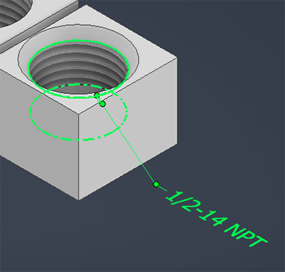 三维标注螺纹注释现在会亮显与螺纹特征相关的所有面。