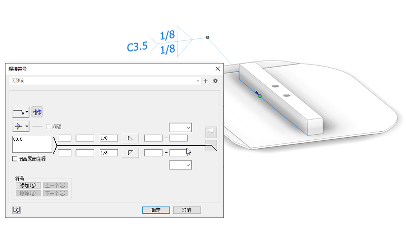 三维焊接符号现在可用作一种三维标注类型。在零件或部件模型中创建和编辑焊接和子焊接符号。然后,在工程图中检索关联符号。导出为三维 PDF、DWF 和共享视图时,三维焊接符号包含在内。