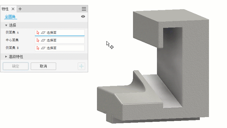 圆角命令已移至特性面板框架,并分成了三个命令,即“圆角”、“面圆角”和“全圆角”。将旧圆角移植到了适当的类型。在移植过程中,不会修改旧圆角名称。