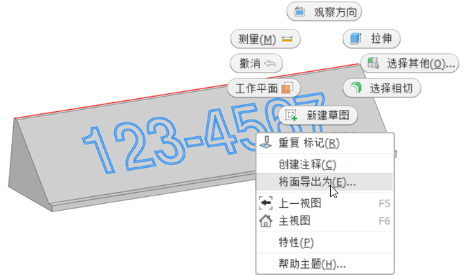 “将面导出为”命令现在支持同时导出单个面或多个面。如果您选择了多个共面的面,则导出选项将显示在选择关联菜单中。