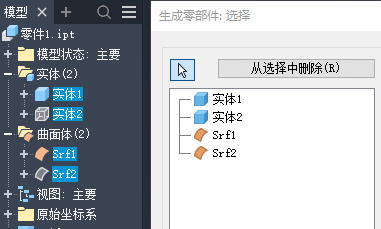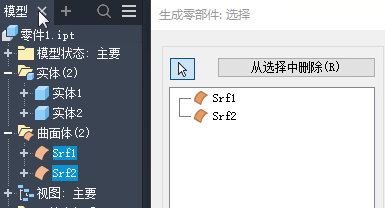 现在,使用“生成零部件”命令时,可以选择曲面体。可以从浏览器或图形窗口中选择曲面体。