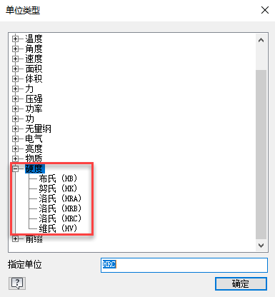 硬度是为此 Inventor 版本添加的全新单位类型。允许在“后处理特征”命令中指定硬度,但也可以单独使用硬度。“参数”对话框中提供了以下类型: