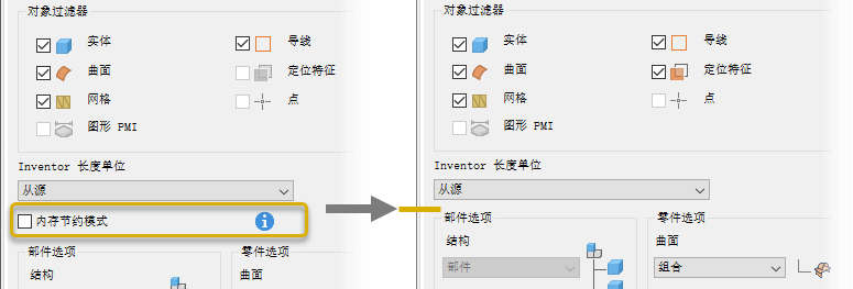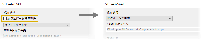 对于 OBJ 和 STL 导入,“加载过程中保存零部件”选项已移除。