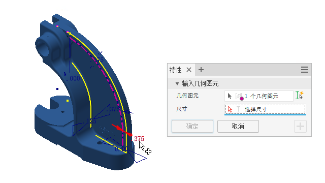 选择特征或草图以启用尺寸,然后选择要升级的尺寸。