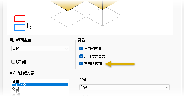 若要使用新的“亮显隐藏面”选项,请转至“应用程序选项”