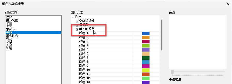 “自定义方案”来访问“颜色方案编辑器”。
