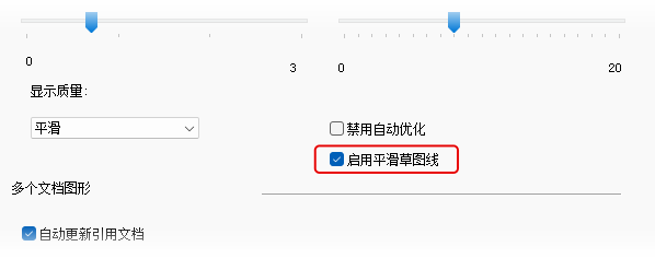 草图几何图元显示得到了改进,以使曲线显示更平滑。默认情况下,用于线显示的这一应用程序选项处于启用状态。