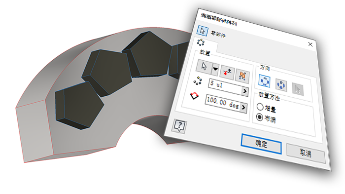 现在,您可以选择旋转面(圆柱面或圆锥面)来定义零部件阵列的方向。“阵列零部件”命令使用面轴来定义阵列方向。使用标准控件来翻转方向。