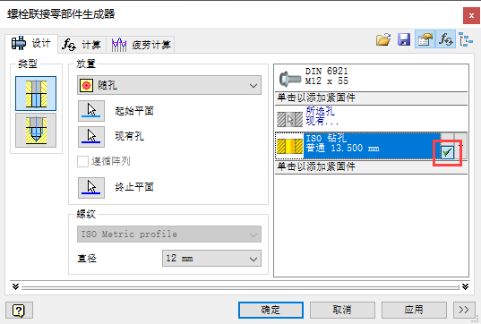 使用“螺栓联接”工具时,会自动创建孔。但是,在某些情况下并不需要孔。螺栓联接零部件生成器中新增了一个选项,用于从紧固件和孔列表中排除选定的一个或多个钻孔。后续进行编辑时,可以决定再次钻取建议的孔。