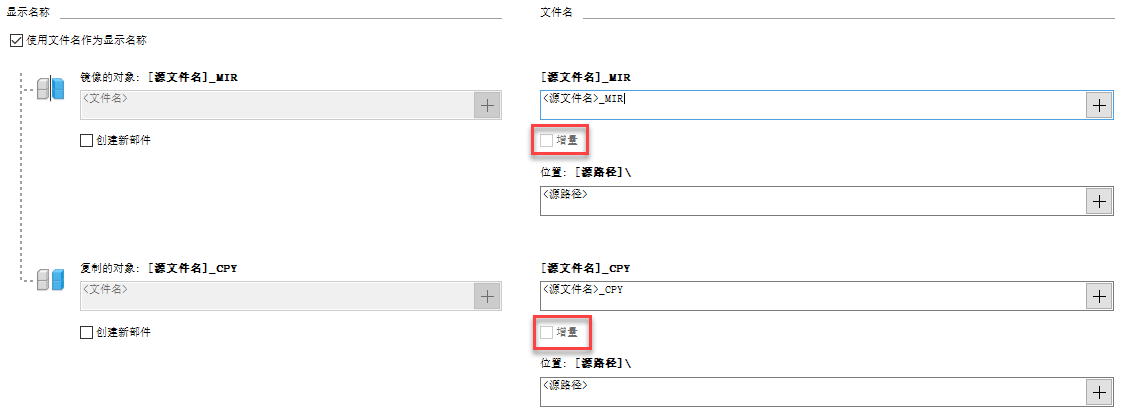 现在,默认情况下,可以使用“应用程序选项”对话框的“镜像和复制”选项卡中新添加的“增量”框指定复制或镜像的零部件的增量编号。这些设置将一直在“复制零部件”和“镜像零部件”对话框中处于选中状态。