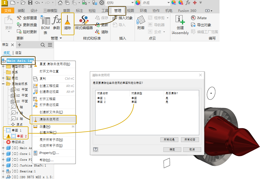 使用新的“清除未使用项”命令有选择地删除未使用的草图。