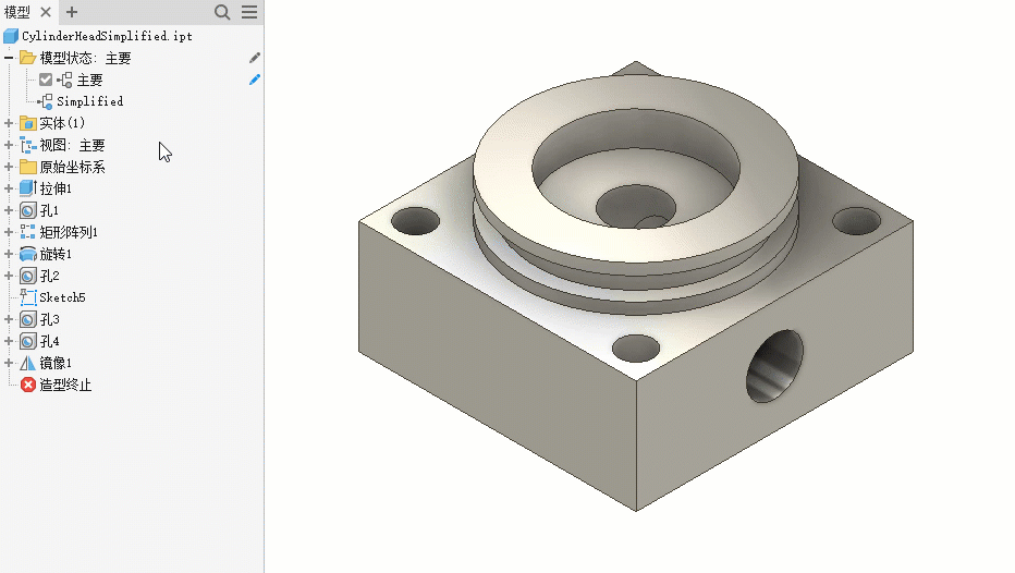模型状态:在同一零件或部件文件中创建制造状态、简化级别等。