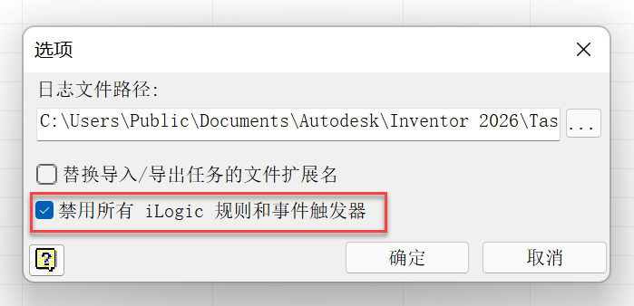 运行任务调度器任务时,可使用新增的复选框禁用所有 iLogic 规则和事件触发器。