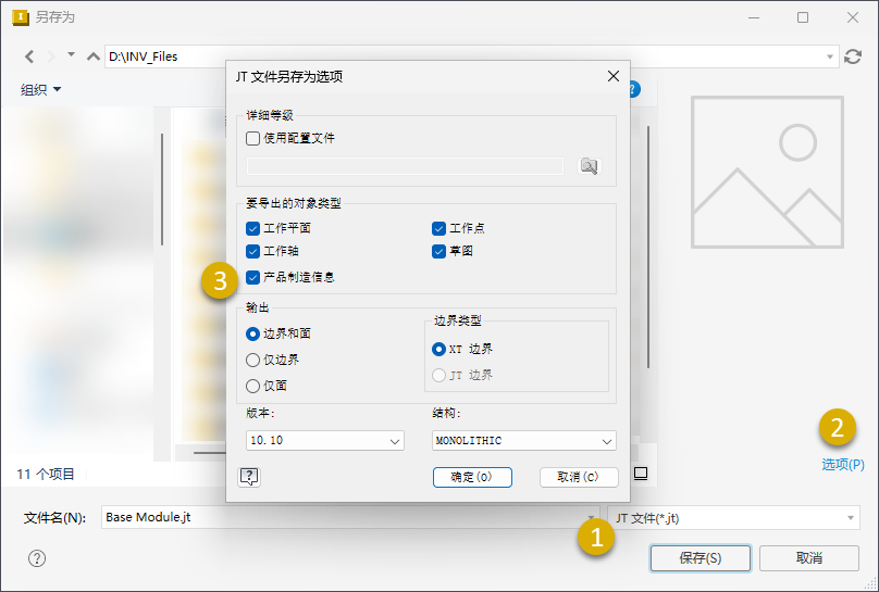以 JT 和 STEP 格式导出顶级部件时,可以包含 PMI。