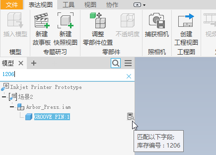 在此版本的 Inventor 中,添加了在 IPN 文件类型中搜索从属文档 iProperty 的功能。