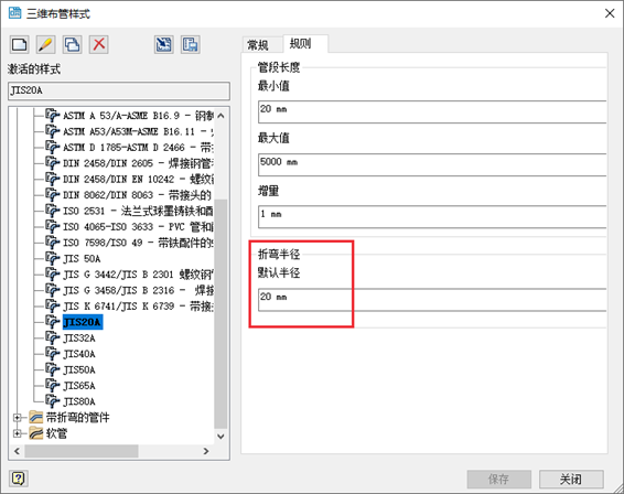 现在,所有默认的“折弯半径”值都将保存到导出的三维布管样式中。三维布管样式中的折弯半径可以导出为 XML 文件,也可以导入。
