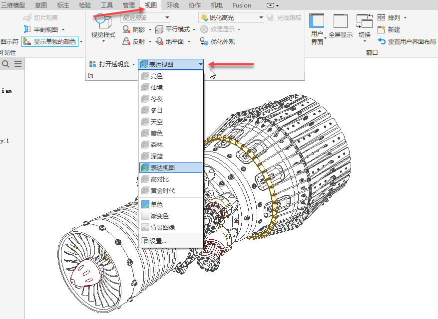 在零件、部件和演示环境中,您现在可以临时替代颜色方案和背景颜色。转到“视图”选项卡,展开“外观”,然后选择所需的颜色方案和背景颜色类型。