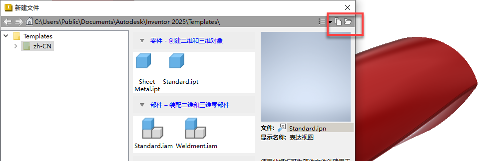 现在,使用“创建新文件”对话框可以更轻松地访问模板文件。在右上角添加了以下两个选项: