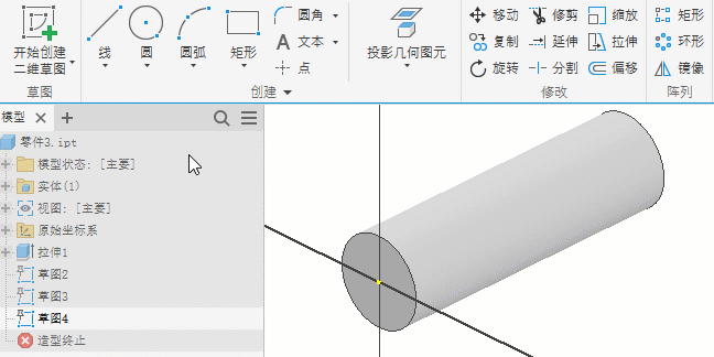 在二维草图环境中使用新添加的“中点线”命令可创建与线的中点对称的线。指定中点即可开始绘制直线。然后,单击以设置直线的终点,或使用编辑字段定义直线终点自中点的长度或角度。请注意,会在中点和选定的几何图形之间创建重合约束。