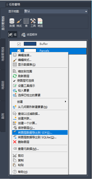 在 Parcels 图层上单击鼠标右键以将其输出。