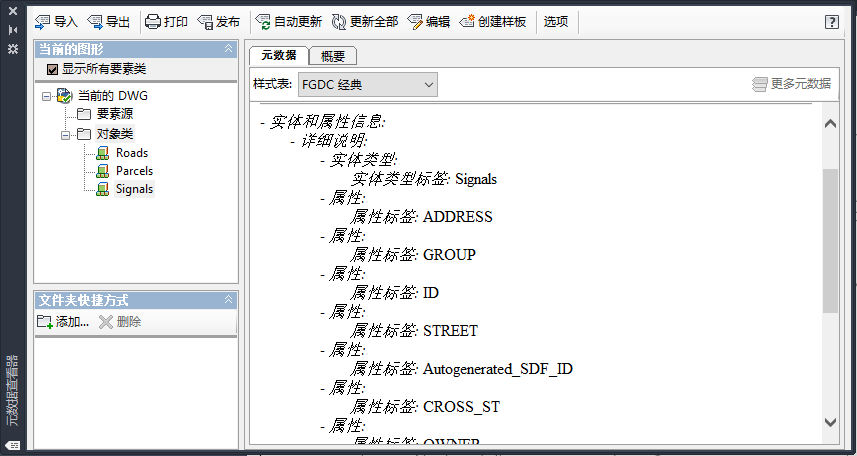 该元数据存储在图形内。每次编辑图形或重新连接到包含已分类对象的附着图形时,都会更新元数据。