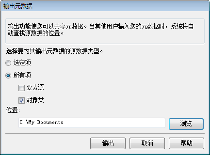 您可以将元数据从图形输出到具有 .mtd 扩展名的 XML 文件。还将创建一个链接文件,该文件与 MTD 文件放在同一位置。您可以在“元数据选项”对话框中设置“自动更新”选项。在该选项处于打开状态的情况下,该链接文件将记住数据的位置并保持所输出的元数据为最新数据。