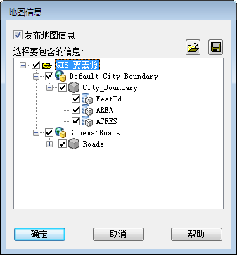 “地图信息”对话框决定哪些数据发布到 DWF。