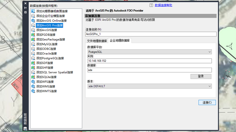 - 现在,AutoCAD Map 3D 2026 允许在 Autodesk Docs 中处理图形和 FDO 数据源。若要访问 Autodesk Docs,请安装 Autodesk Desktop Connector。在 Autodesk Docs 中,从 Autodesk Docs 文件夹将具有 FDO 连接的图形保存为任何文件格式,例如 SHP、SDF、SQLite 或光栅数据。然后,从任意本地计算机打开这些文件,其中的所有 FDO 连接都保持不变。