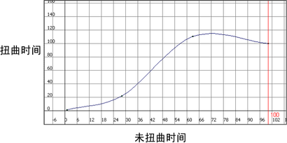 时间扭曲曲线连接到全局时间节点,将全局(未扭曲)时间值映射到已扭曲时间值。在“曲线图编辑器”(Graph Editor)中查看时间扭曲曲线时,已扭曲时间由垂直轴表示,而未扭曲时间则由水平轴表示。
