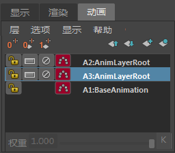 (请参见禁用、锁定和单放动画层和为动画层的权重设置关键帧。)
