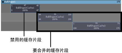 可以同时合并对象的所有几何缓存片段,方法是针对合并操作选择该对象,而不是其几何缓存片段。合并时,对象的所有启用的缓存片段将烘焙到单个缓存片段。