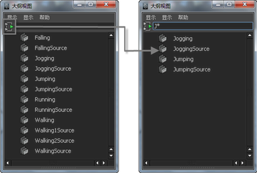 例如,如果只想在大纲视图中显示名称以字母 D 开头的片段,请在大纲视图的文本过滤器字段中输入 D*,然后按 Enter 键。