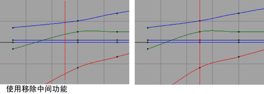 “曲线图编辑器”(Graph Editor)“移除中间帧”(Remove Inbetween),对于