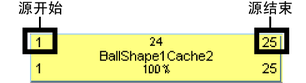 可以修剪几何缓存片段以略去缓存片段的开头或末尾的变形分段。这会更改缓存片段的“源输入”(Source In)和“源输出”(Source Out)时间。修剪缓存片段不会影响磁盘上与其关联的缓存文件。使用修剪功能从缓存片段中略去的分段不会被删除,在还原缓存片段的原始长度时,可以恢复这些分段。