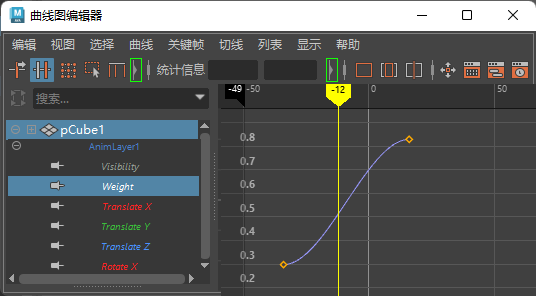动画层权重在“曲线图编辑器”(Graph Editor)中显示为曲线