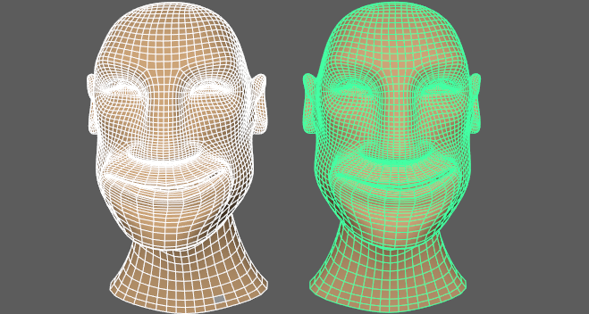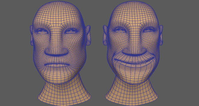 在此示例中,有两个头部模型:一个已设置动画,另一个未设置动画但具有面部表情。