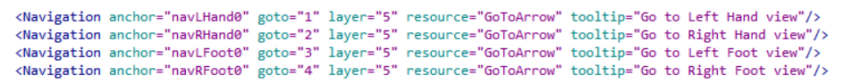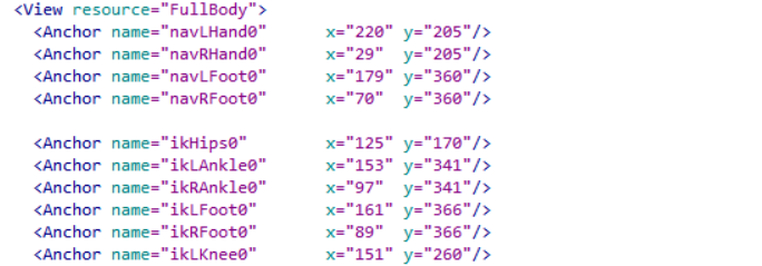 配置文件中的每个部分都使用以下资源元素,例如 <View resource="FullBody">:对应于特定于全身的资源,<View resource="LeftHand">:对应于特定于左手的资源,<View resource="RightFoot">:对应于特定于右脚的资源,等等。