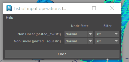 - 在显示的“输入操作列表”(List of input operations)窗口中,使用鼠标中键将变形器拖成您希望的出现顺序。