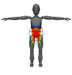 利用交互式平滑蒙皮绑定方法,可以基于体积操纵器设定网格上的初始权重。体积对象可以让您直观地了解要绑定的每个关节的影响范围。