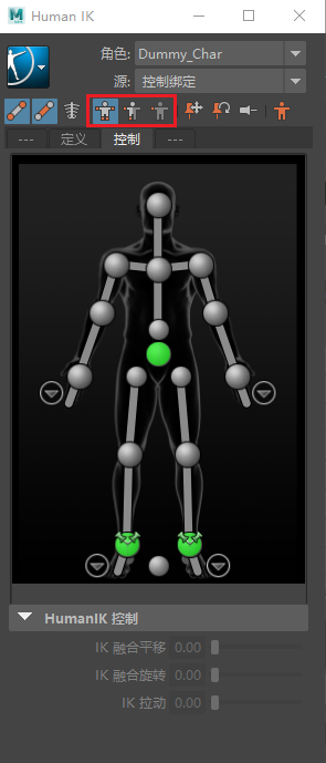 设置关键帧模式图标位于 HumanIK 窗口顶部