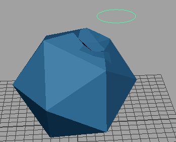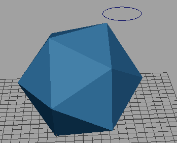 - 确保场景中有要变形的几何体和要用作线条的曲线。(在此示例中,使用了“多边形建模”(Poly Modeling)工具架中的标准多边形柏拉图多面体形状和“曲线”(Curves)工具架中的 NURBS 圆形。)