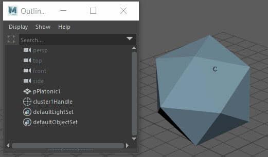 选择“c”,然后按住 Shift 键并选择以移除其他所有对象,或在“大纲视图”(Outliner)中选择簇控制柄。